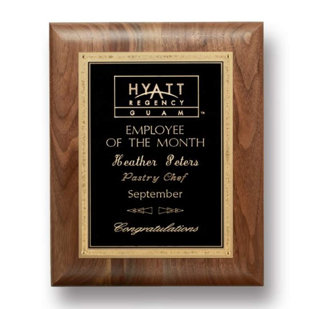 The Gemstone series of marbleized brass plates is finished with a crystalline textured edge and available in four colors and two sizes. Mounted to our modern styled American walnut plaque.