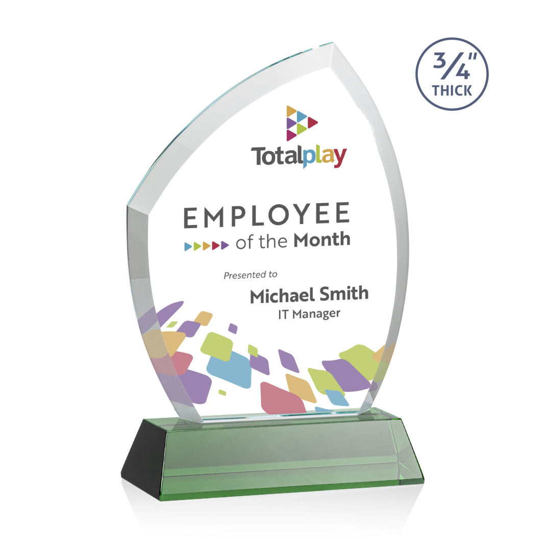 With its beautiful curved beveled frame, the 3/4" thick Starfire Crystal Daltry is a graceful award for recognizing a special achievement. Mounted on a tall tapered base in your choice of 8 distinct colors and includes full-color VividPrint™ for a vibrant display of excellence. Second position imprint optional.