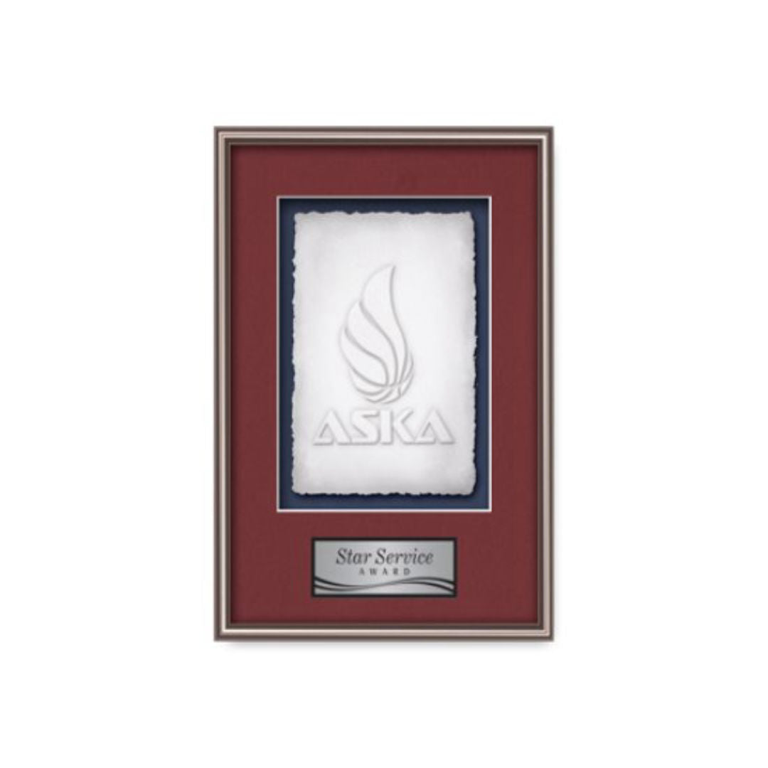 The Fenestra Cast Paper Framed Award capitalizes on the contrast between the organic, delicate nature of cast paper art and the stunning permanent gallery presentation for achievement recognition. This framed work of art is surrounded by our exquisite Fenestra molding, your choice of 2 standard mattes and a personalization plate to give your accomplishment a remarkable, dramatic display.