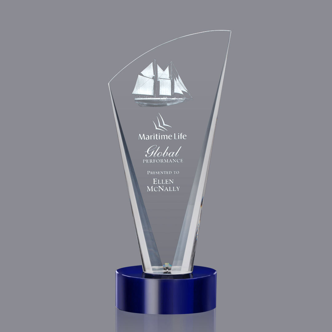 The multi-beveled sides and arched top of the Brampton create this amazing spotlight of clear optical crystal, mounted to a round blue base to bring Hollywood glamour to any accomplishment. Turn your award into a magnificent work of art with Dimensions 3D crystal.