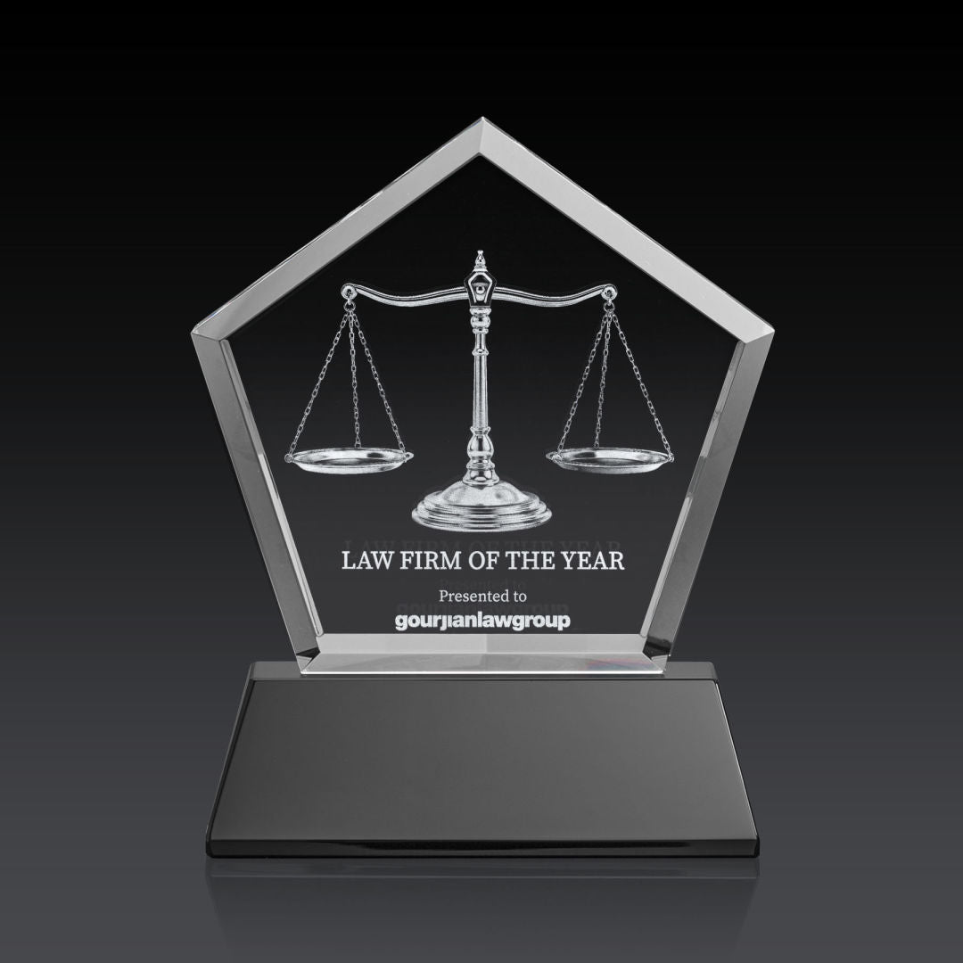 The Genosee Dimensions 3D award features a thick optical crystal pentagon with a beveled frame and large window to embed your message of recognition excellence right into the crystal. A striking award to commemorate an exceptional achievement or special anniversary. Mounted on your choice of tall tapered optical crystal base in 8 distinct colors. Second Position Etch Optional.