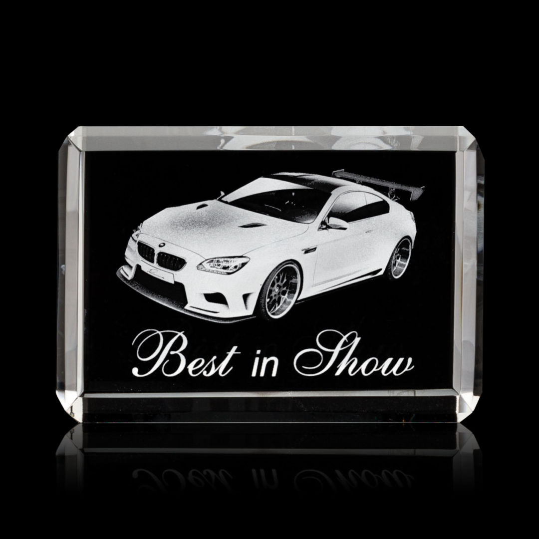 Beautiful 3 Dimensional etching inside the horizontal crystal for a very unique display. This award features sparkling double beveled edges all around. With many shapes & sizes available and available in...