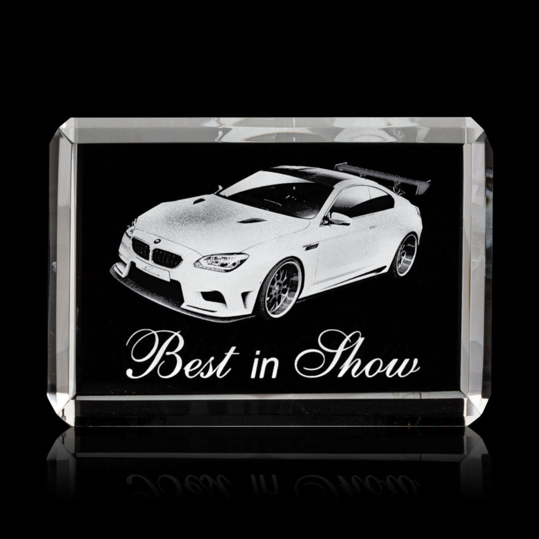 Beautiful 3 Dimensional etching inside the horizontal crystal for a very unique display. This award features sparkling double beveled edges all around. With many shapes & sizes available and available in...