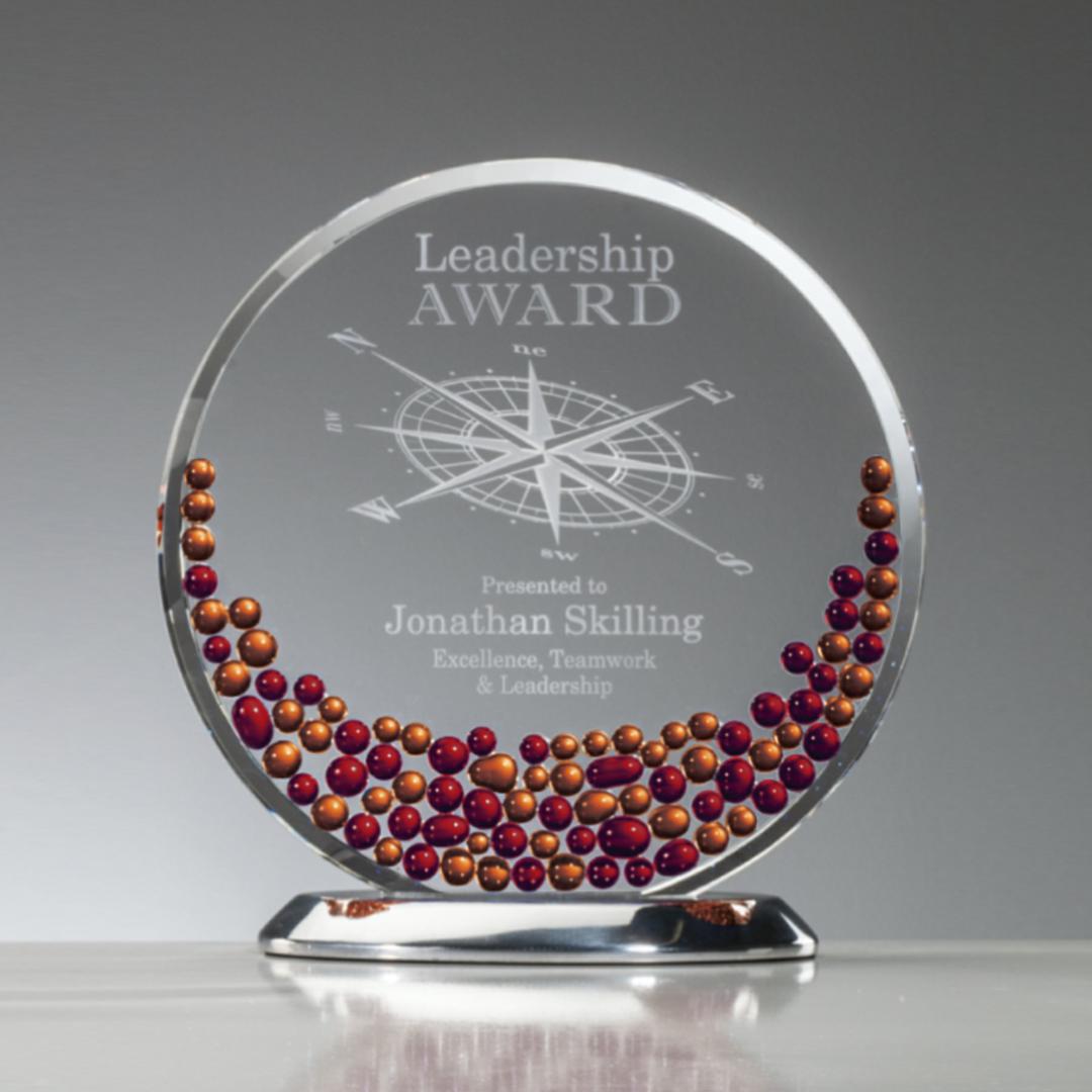 Beautifully beveled starfire crystal disk is complimented by a mosaic of ruby and amber crystal beads on the front and back. Each crystal drop is applied by hand and fired in our kilns to ensure durability and that no two are alike.