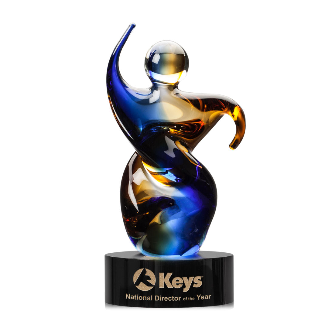 Stunning Hand Blown work of Art Complete with a complimenting Optical Base for personalization with a Logo or name Each piece is individually Hand-Crafted No two pieces are identical All sizes are approximate & will vary from piece to piece 1 Colorfill Included