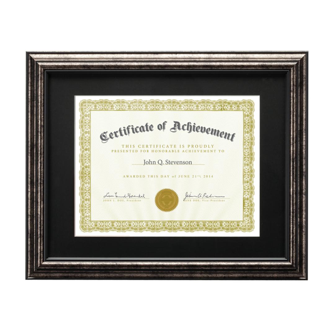 The distressed bronze finish of the Delhi certificate frame is enhanced with a deluxe black matte to give your achievement a sophisticated, luxe style of distinction.