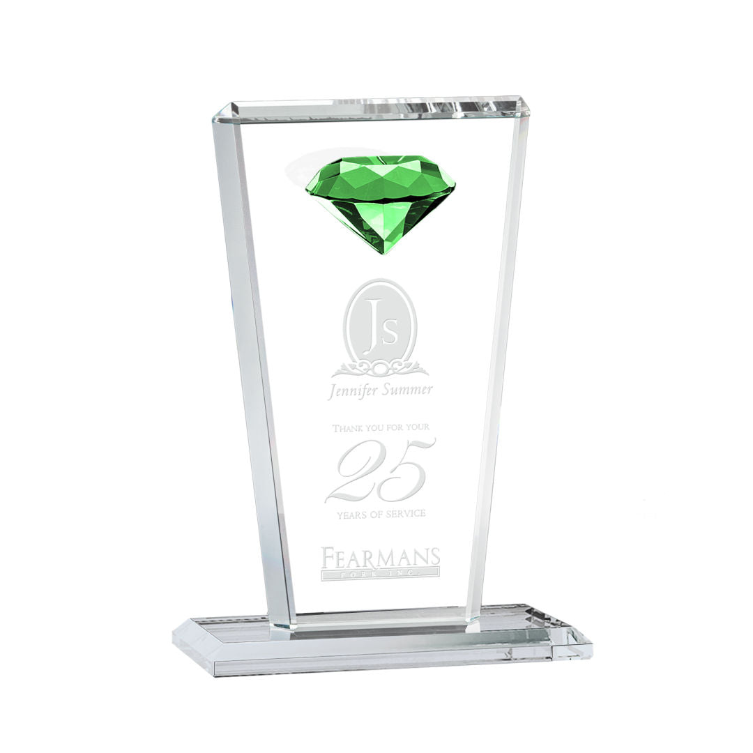 This tapered Crystal Award features a sparkling faceted gemstone to give prominence to your accomplishment.