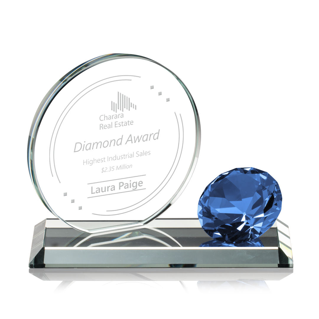 Alongside its large starfire crystal disc, perfect for showcasing your message, the Encarna award dazzles with a stunning sapphire gemstone, signifying excellence and perfection!