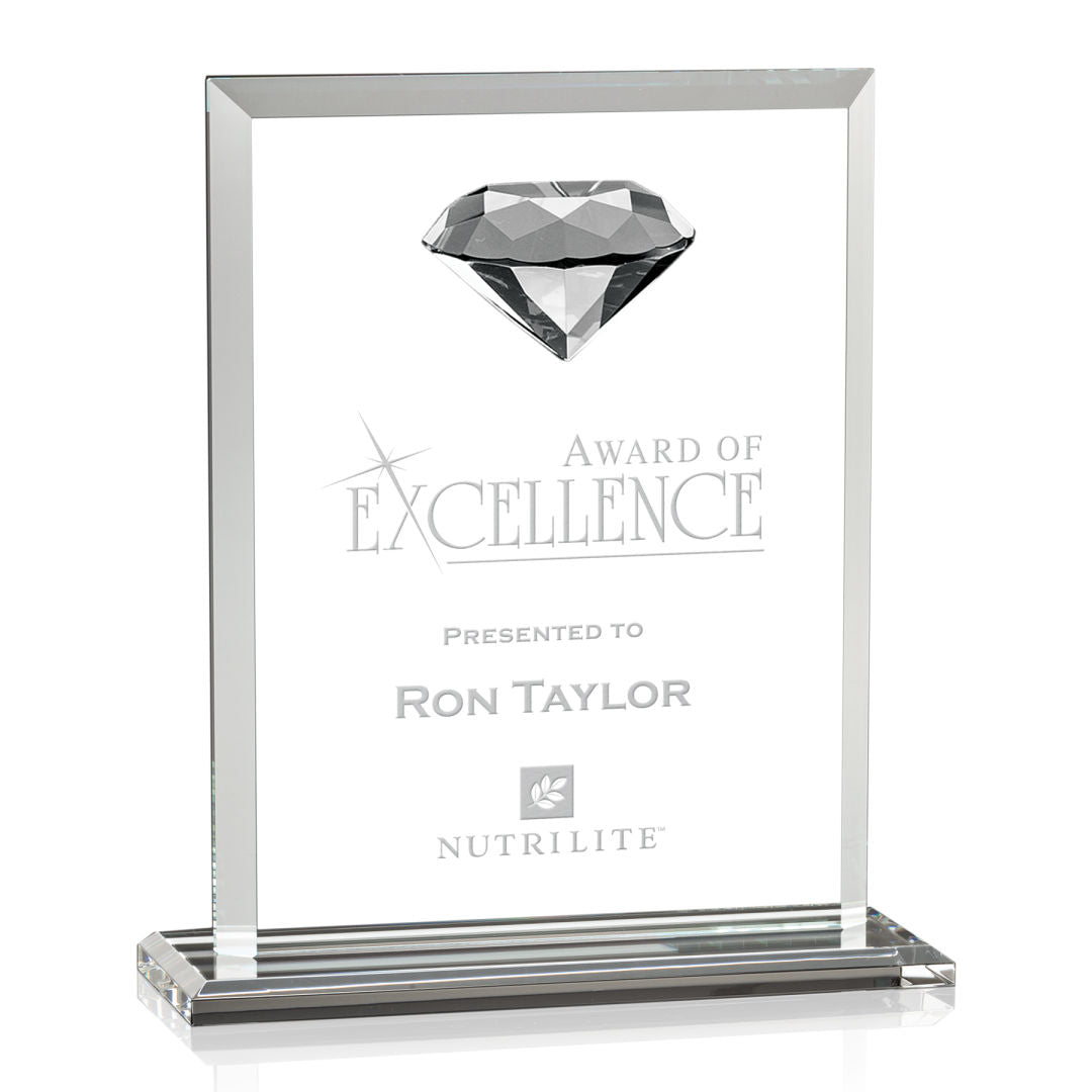 Our bevelled optical crystal rectangle is highlighted with a sparkling faceted diamond gemstone to give your accomplishment 100-carat prominence.