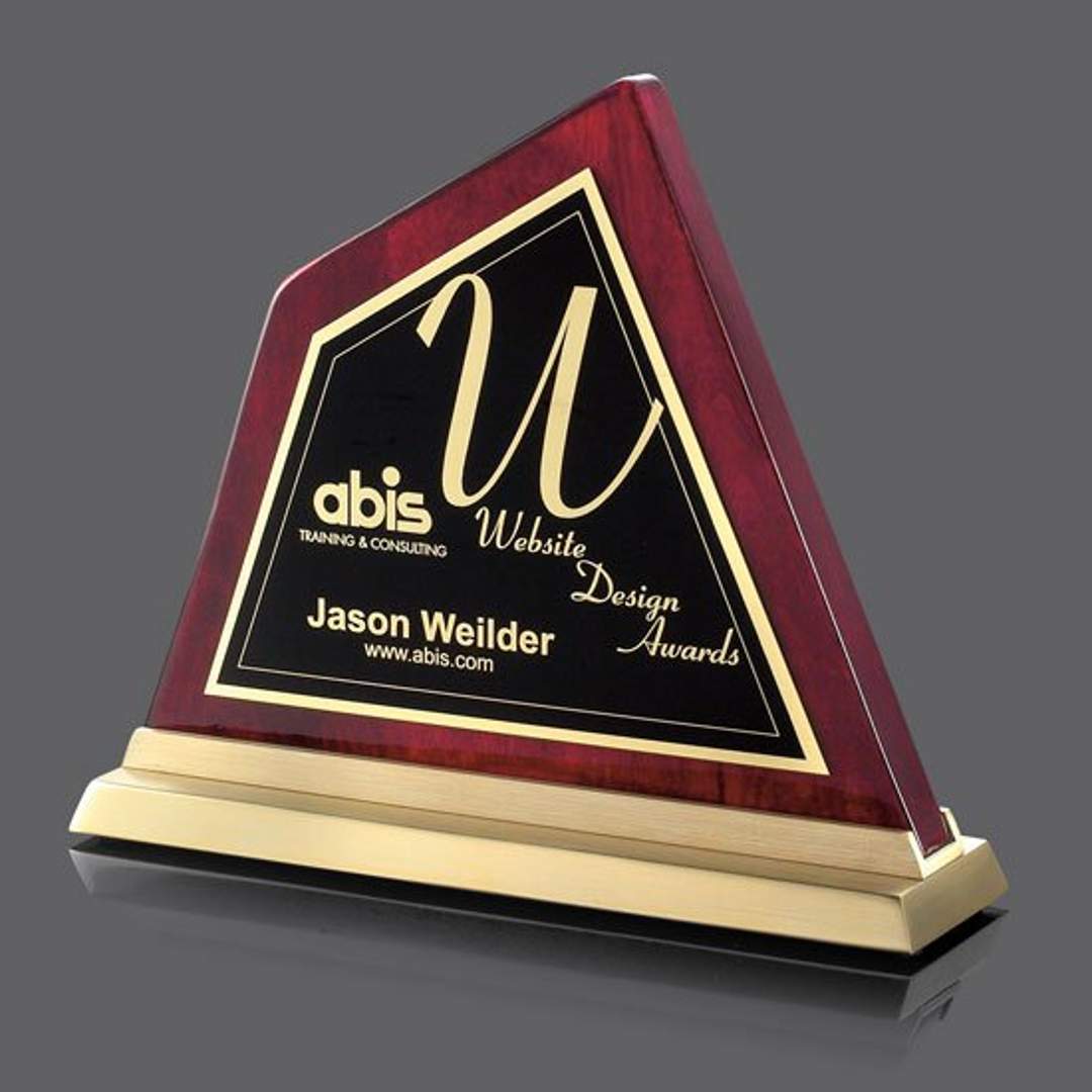 Beautiful Rosewood Peak Award Complete with Gold Metal Cast base & Engraving Plate