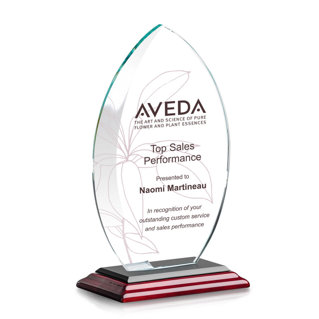 The arced sides of the Starfire Windermere Award with its broad bevel and piano-finished Rosewood Albion base perfectly complement the vibrant full-color VividPrint imprint on the backside.