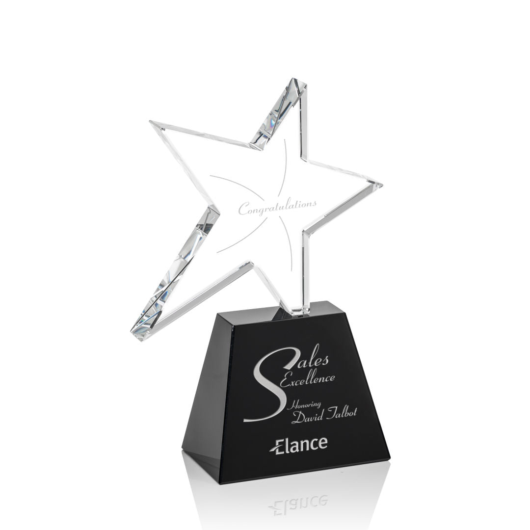 Waterjet cut star mounted on an Optical Blue base 1 Colorfill Included (Blue and Black Bases Only) 2nd Position Etch Optional Available in 3 Colors