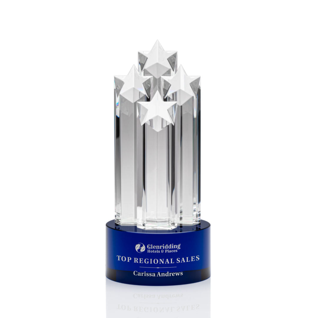 The Spectacular Ascot Star Optical Crystal Award features four statuesque Optical shooting stars reaching to astronomical new heights. With an Optical Sapphire Crystal Base, the Ascot Award is an excellent monument to recognize a stellar accomplishment.
