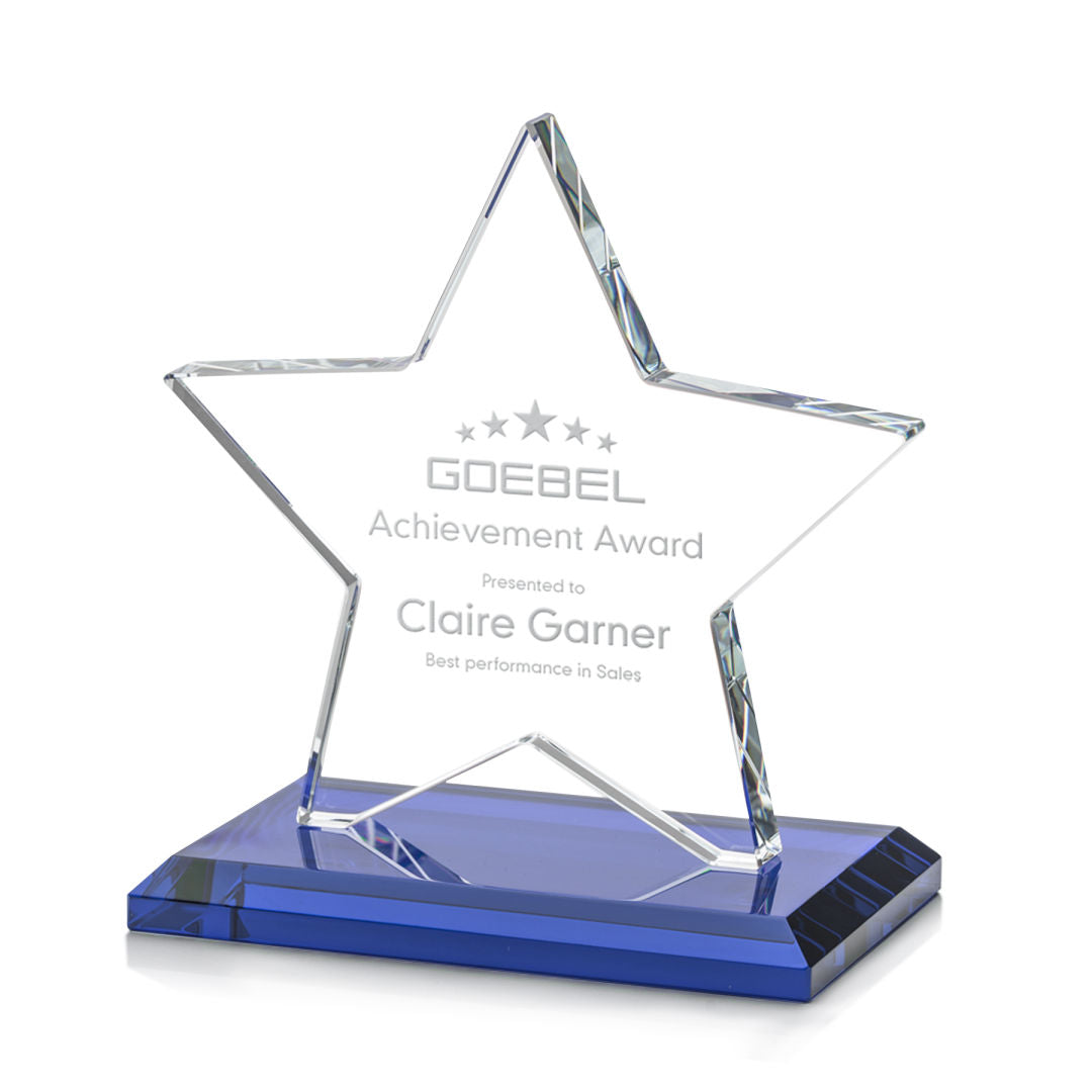 Sudbury Star Award features a beautifully beveled Starfire Star mounted on your choice of a clear or colored beveled base. An exceptional award to recognize a star performer.