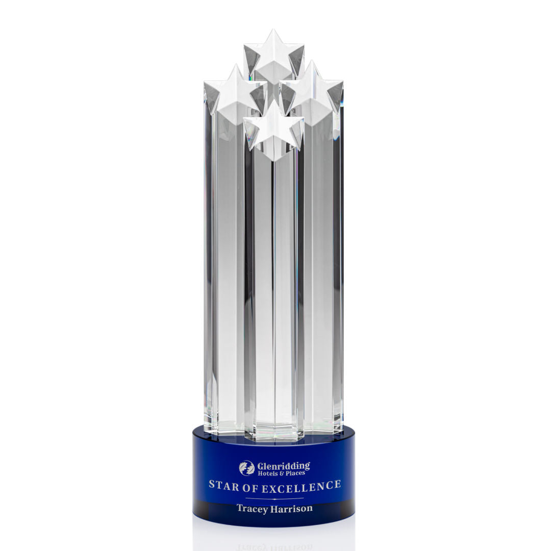 The Spectacular Ascot Star Optical Crystal Award features four statuesque Optical shooting stars reaching to astronomical new heights. With an Optical Sapphire Crystal Base, the Ascot Award is an excellent monument to recognize a stellar accomplishment.