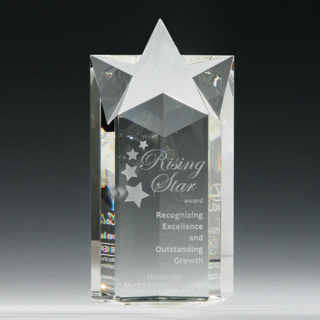 Upright Crystal Star features dazzling facets, optical clarity and beautifully sculpted lines. Perfect for honoring a sales achievement or going above and beyond the scope of a project