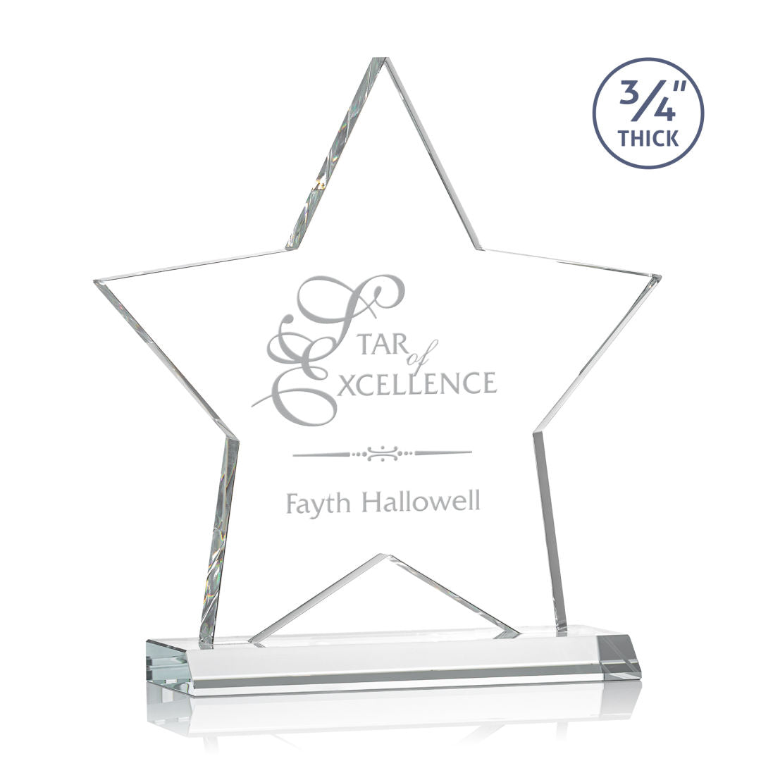 The Chippendale Star Award features a magnificent Optical Crystal Star mounted on top of a Clear front mitered base. The perfect recognition award for a Star Performer. 2nd position etch optional.