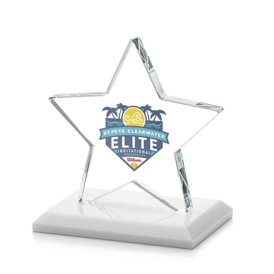 Sudbury VividPrint™ Star Award features a beautifully beveled 1/2" thick Starfire Star mounted on your choice of a clear or colored beveled base. An exceptional and vibrant award to recognize a star performer.