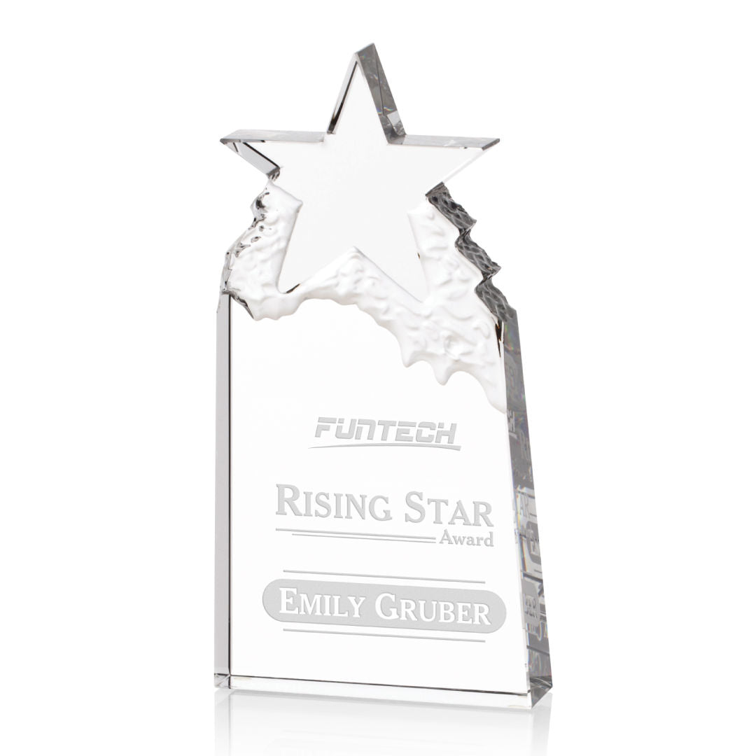 Beautiful Optical Award with a Cut Out Clear Star Mounted on a Mountain Top