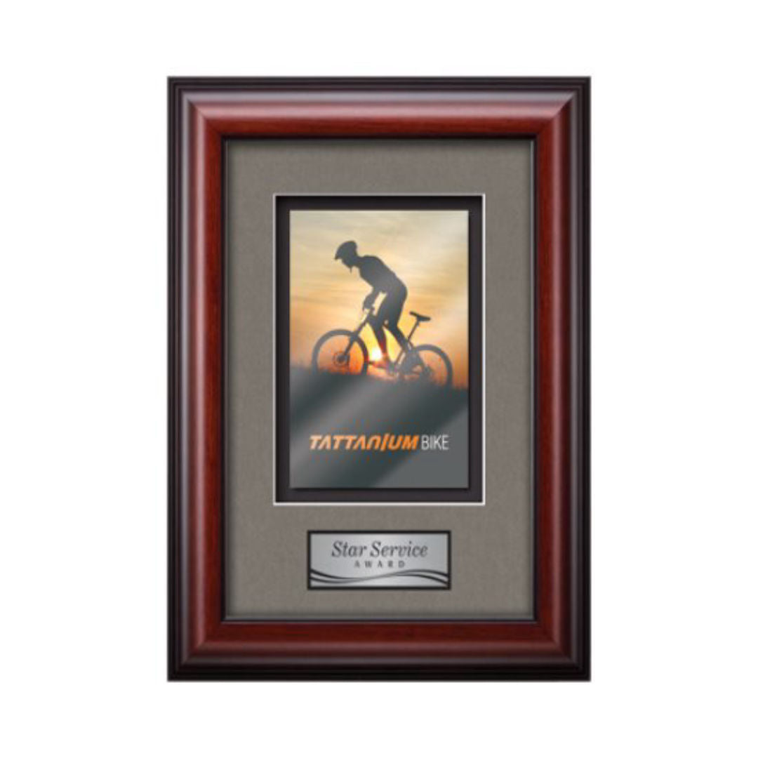 Waterleaf Studios special VividPrint™ process precisely replicates your full color artwork onto high polished metal plates. Combining the contemporary, sleek metal plates with the vibrant VividPrint™ process creates a truly unique and dynamic statement of achievement. Framed with our museum quality Cornaro molding, your choice of 2 standard mattes and a personalization plate.