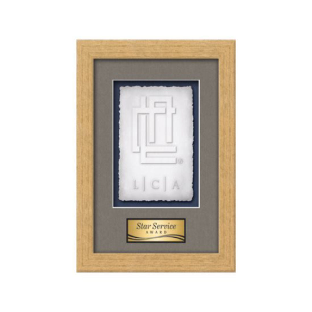 The Eldridge Cast Paper Framed Award capitalizes on the contrast between the organic, delicate nature of cast paper art and the stunning permanent gallery presentation for achievement recognition. This framed work of art is surrounded by our exquisite Eldridge molding, your choice of 2 standard mattes and a personalization plate to give your accomplishment a remarkable, dramatic display.